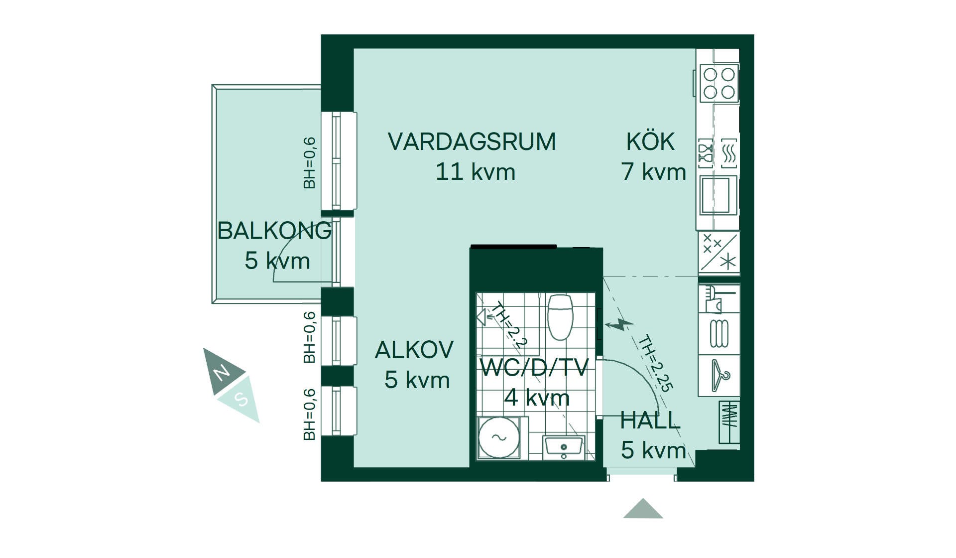 1 Rum, Storlek 32 m²