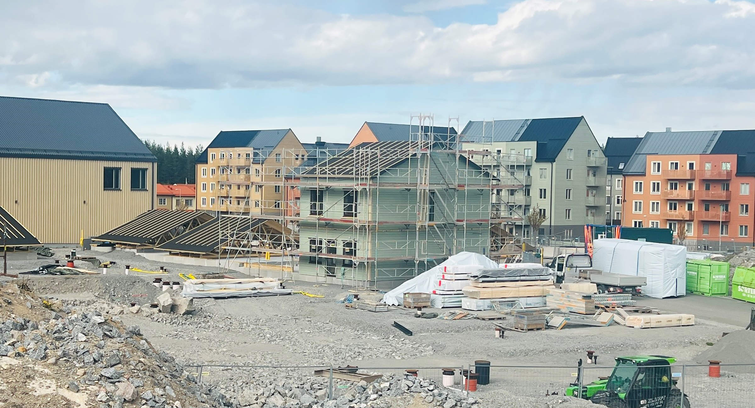 Byggnationen av Sigrids kulle har fortsatt under sommaren och grannskapet börjar ta form. Just nu pågår invändiga arbeten. Framåt årsskiftet flyttar de första grannarna in i sina gröna, fina hus.